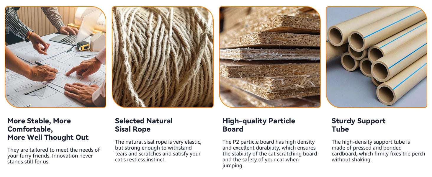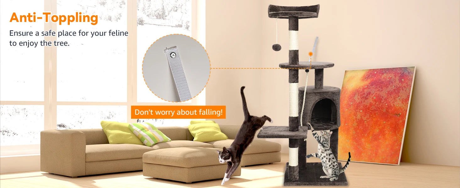 Keep your cat entertained and active with the Passerscat Multi-Level Cat Tree. Featuring a plush cat litter, three platforms, a dangling pompom, and a sturdy sisal scratching post, this indoor climbing tower promotes play, relaxation, and claw care while keeping cats off furniture. Ideal for any room with a compact 112 cm height.